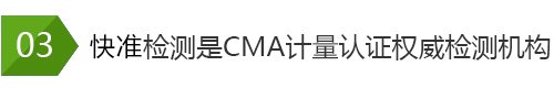 中國計(jì)量認(rèn)證簡稱“CMA”,只有取得CMA認(rèn)證證書的檢測機(jī)構(gòu),才能夠 從事檢測檢驗(yàn)工作,對(duì)外出具檢測報(bào)告,并允許其在檢驗(yàn)報(bào)告上使用CMA 標(biāo)記。有CMA標(biāo)記的檢驗(yàn)報(bào)告可用于環(huán)境及產(chǎn)品的質(zhì)量評(píng)價(jià)、成果及司法 鑒定